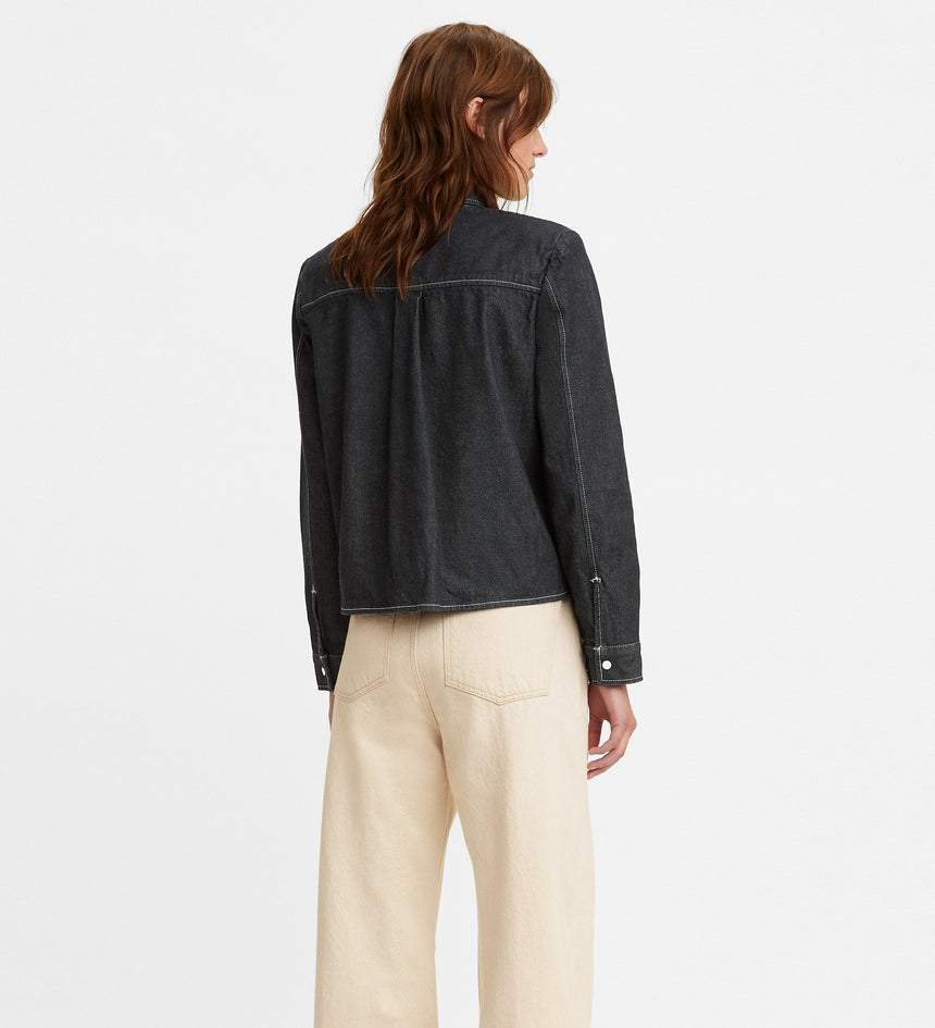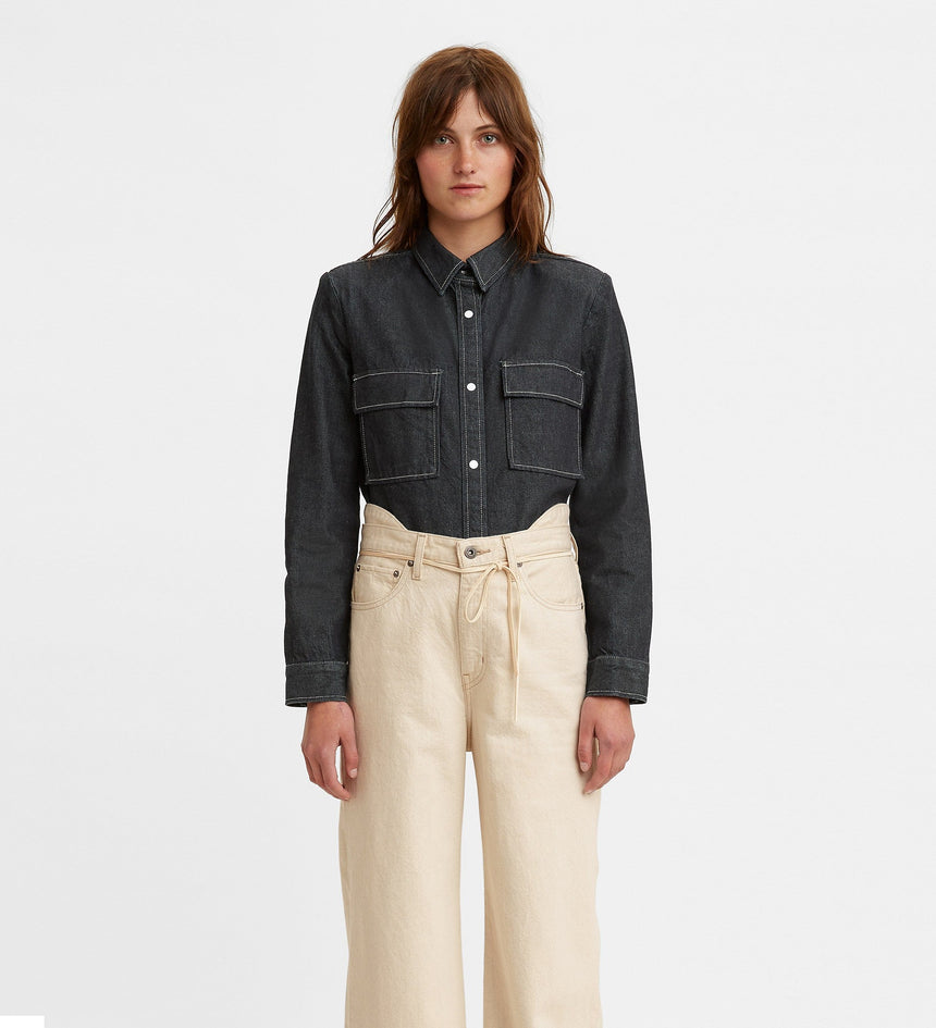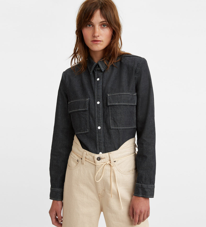 Tailored leisure for every day. Levi's® Made & Crafted® Bold Shoulder Shirt is inspired by the free, audacious spirit of the expedition and silhouettes that define the uniform of adventurers and paleontologists, alike. Its boxy, workwear shape and oversized chest flap pockets are softened by a cropped hem, padded shoulders and rich indigo hue. And even better — it's constructed...