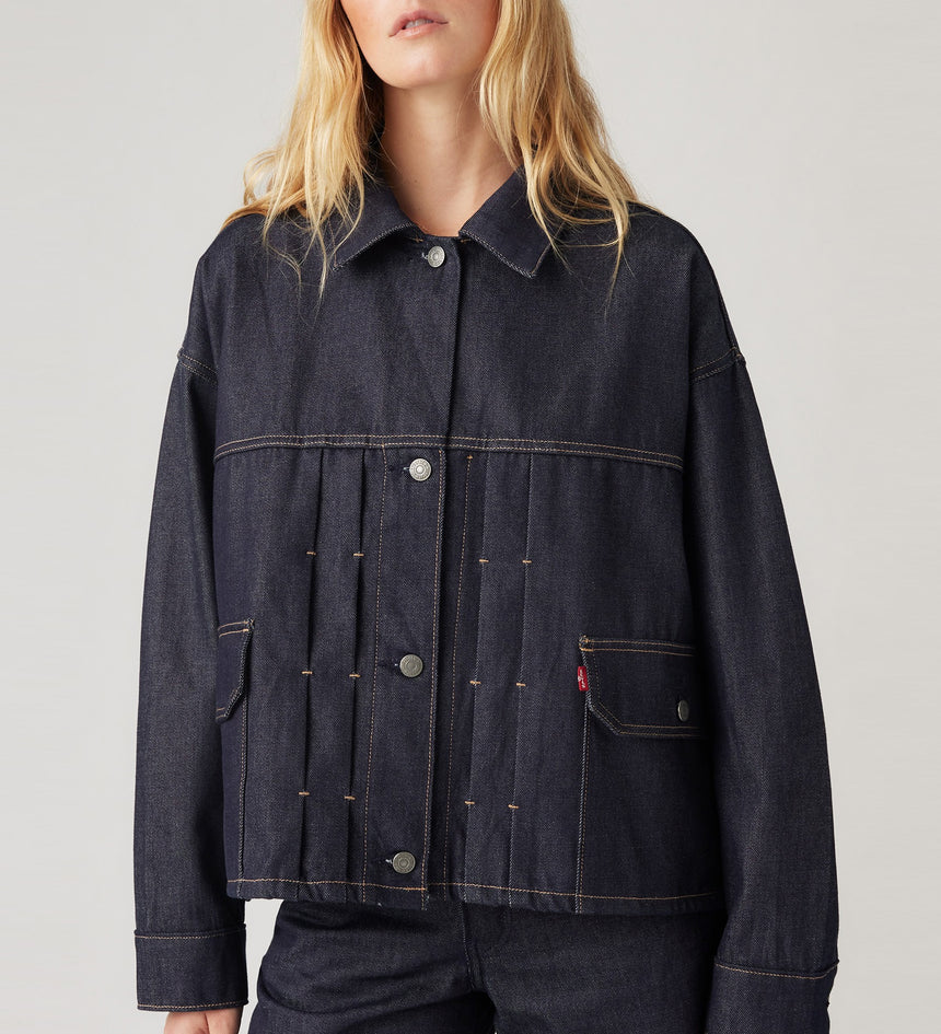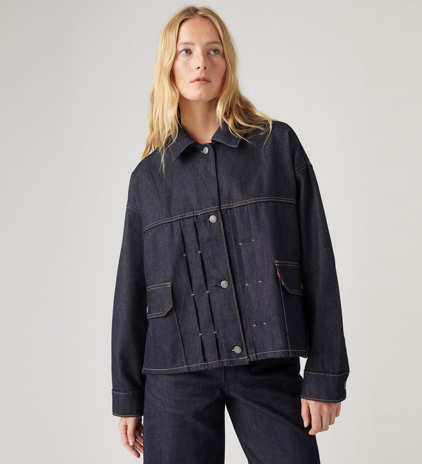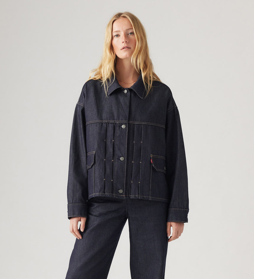 Levi's® WellThread® is a collection designed at the intersection of sustainability and innovation. Classic product with timeless design, carefully crafted to be reused or recycled.This vintage-inspired jacket is a throwback to Levi’s® Type II Trucker Jacket, which is known for its unique pleated detail and two-flap pocket design. Our Iris Relaxed Type II Trucker Jacket is an homage to the...