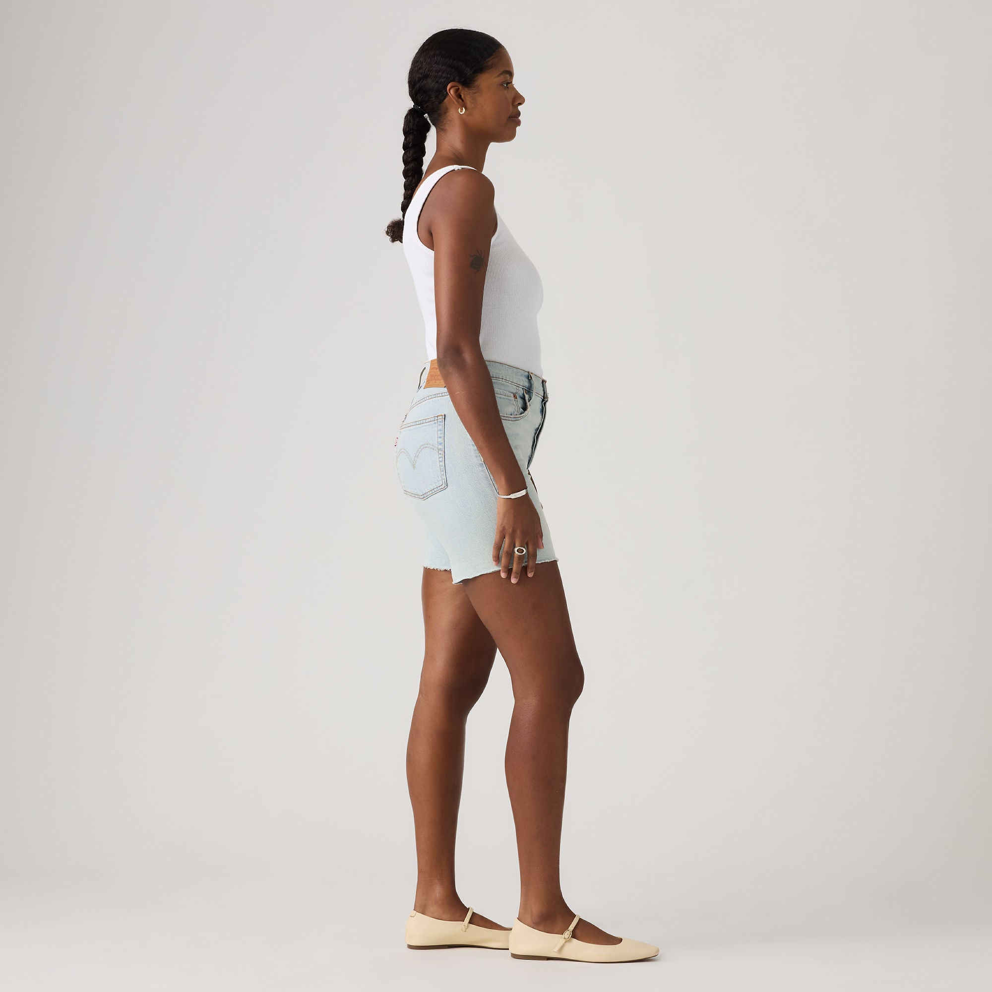 The first ever jean shorts. Modeled after the 501® Original jeans, these Mid-Thigh Shorts were made with our iconic vintage-inspired fit, a flattering high rise and a longer inseam. To this day, they’ve never gone out of style. And they never will.