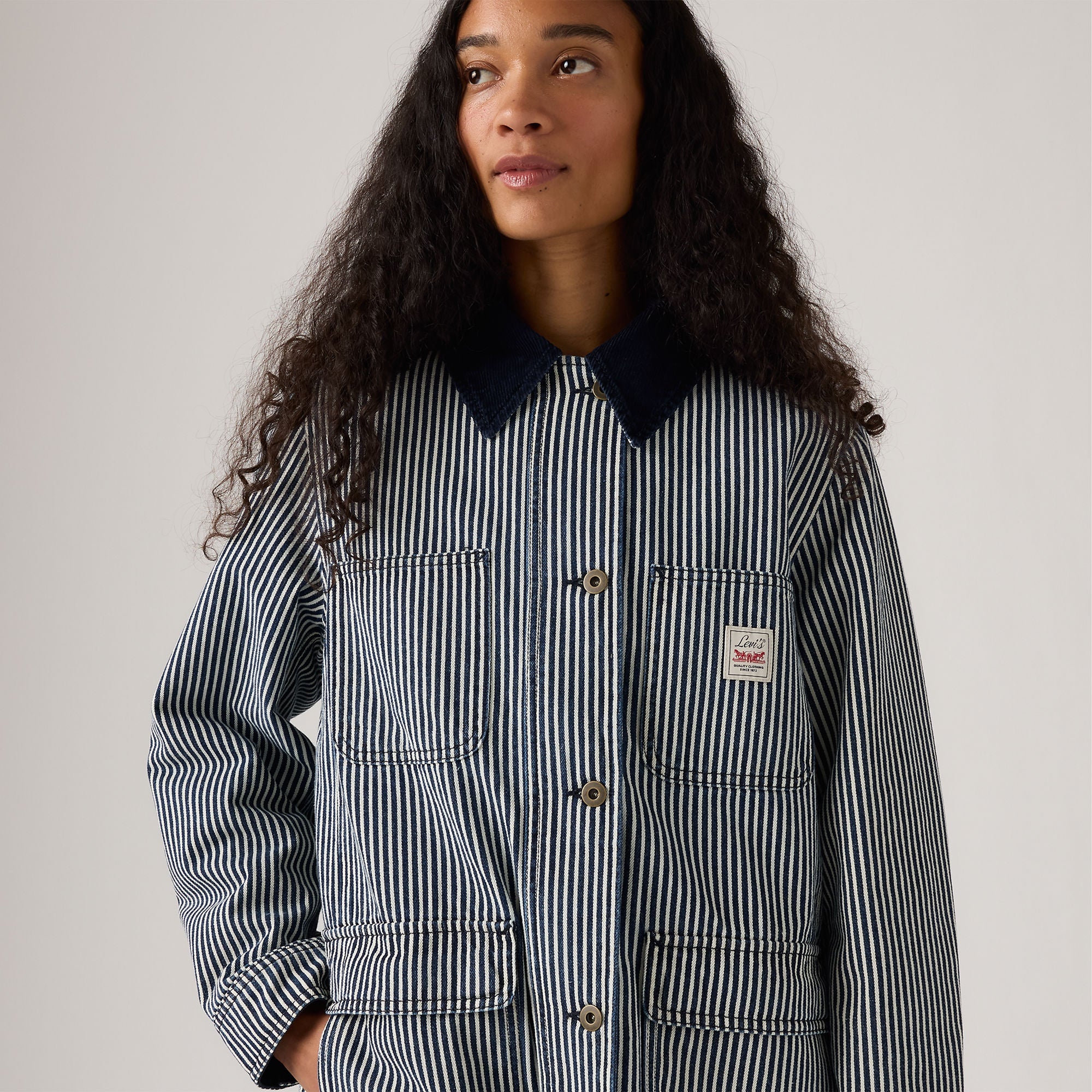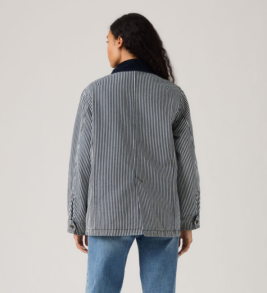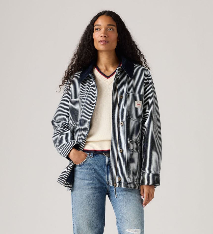 The layer you've been looking for: Our Bree Barn Striped Jacket. We designed it with a zip and button-up front, a relaxed fit and a longline silhouette.