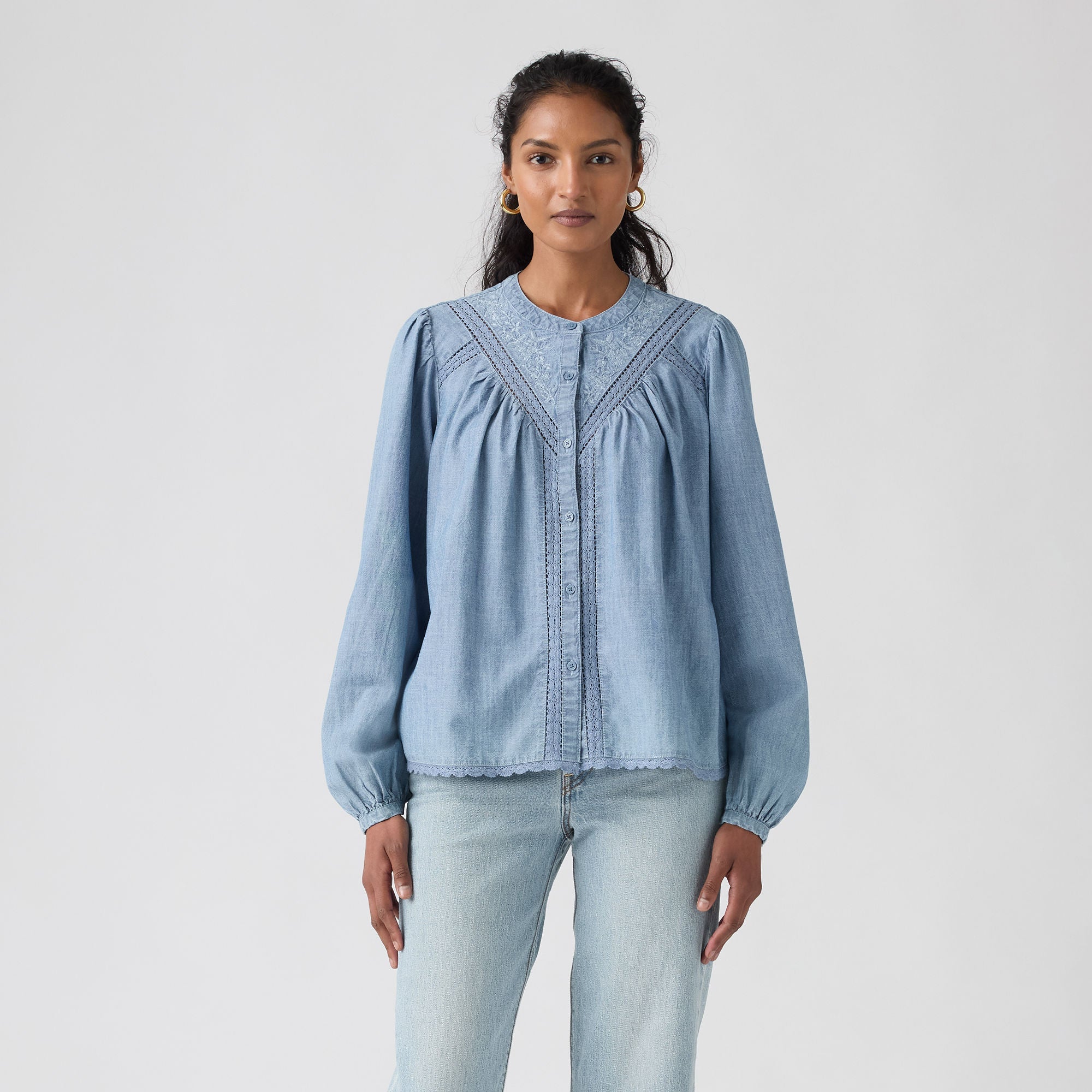 A simple way to elevate your outfit: our Cleo Long-Sleeve Blouse. We made it with a high neckline, a button-up front and an easygoing relaxed fit.