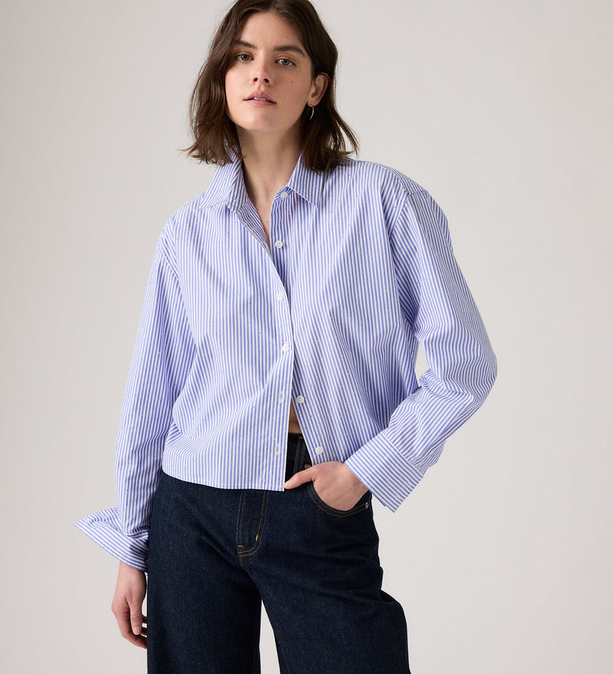 Not your average button-up. This Cropped Harlie Shirt features a sleek collar, a just-right relaxed fit and a button-up front.