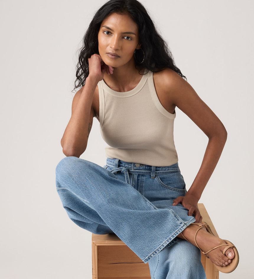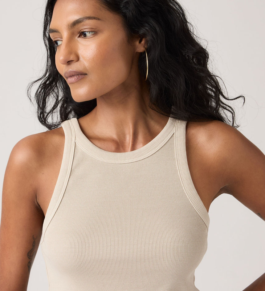Classics like our Essential Racer Tank never go out of style. We made this one with a timeless crew neckline and a fitted cut—all topped off with our signature red tab.