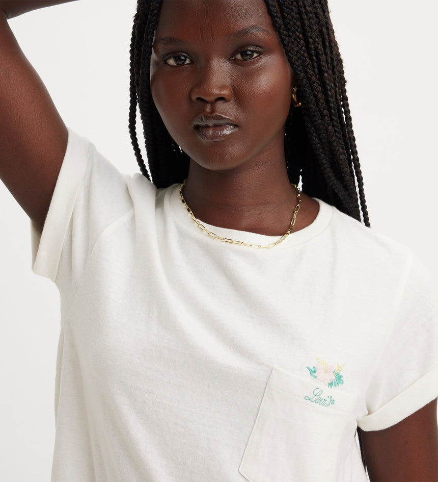 Your favorite tee, upgrade with a bold design. Our Graphic Margot T-Shirt features a classic crew neckline, a single pocket, short sleeves and an easy, standard fit.