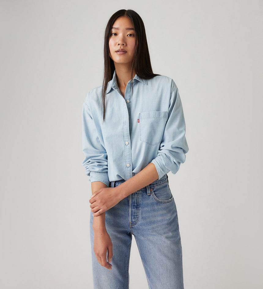 Keep it laid-back with our Harlie Boyfriend Shirt. It's a relaxed-fitting, do-it-all wardrobe stable that looks equally good by itself or thrown over your favorite tee.
