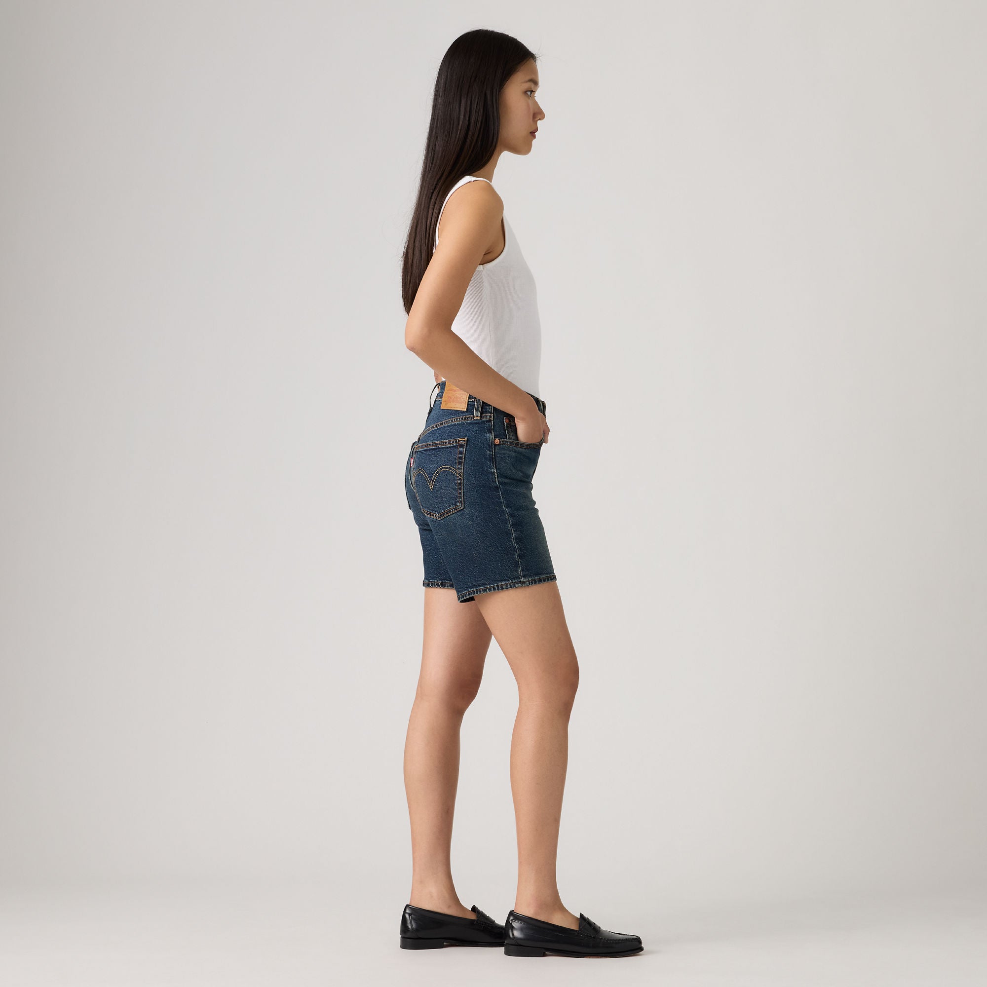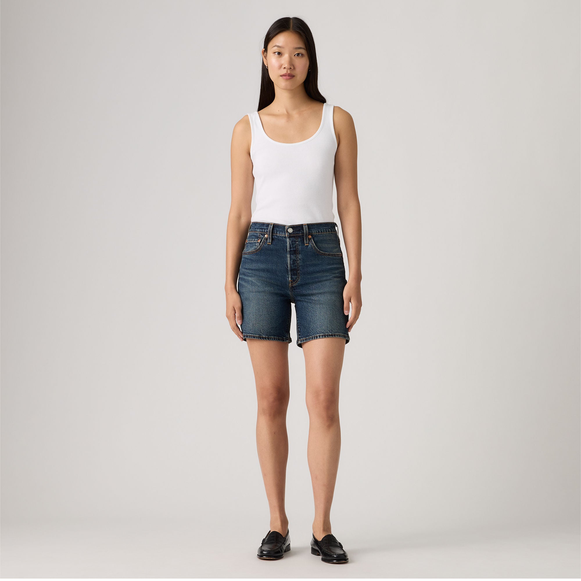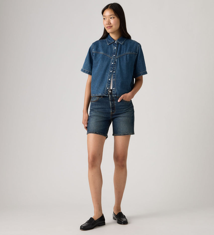 The first ever jean shorts. Modeled after the 501® Original jeans, these Mid-Thigh Shorts were made with our iconic vintage-inspired fit, a flattering high rise and a longer inseam. To this day, they’ve never gone out of style. And they never will.