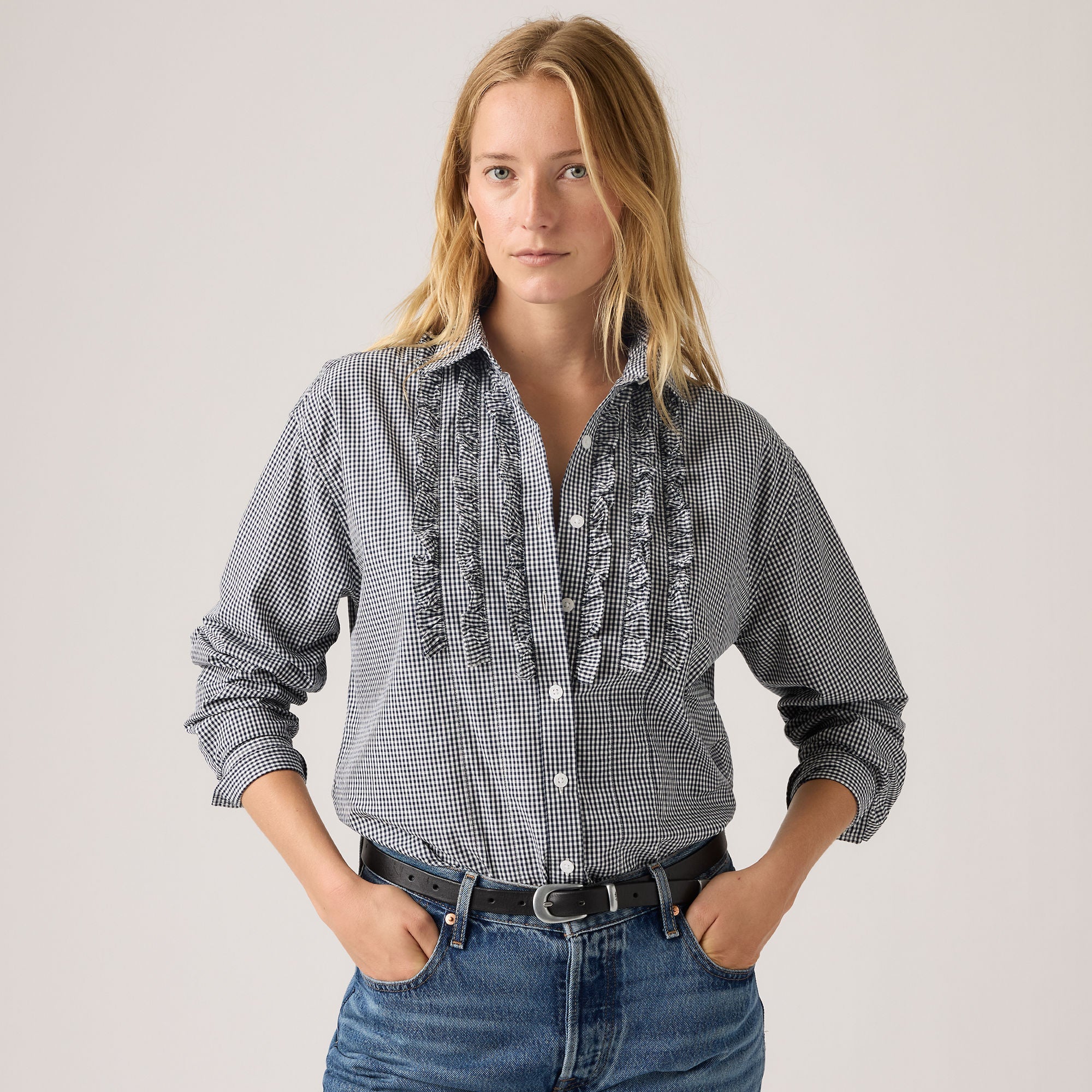 A modern take on the classic button-up. We made our Novelty Harlie BF Shirt with a relaxed fit and two timeless chest pockets.