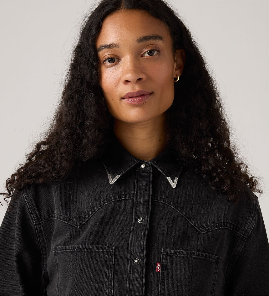 Cowboy boots not included. Our Teodora Western Shirt is a feminine take on a western staple, with a classic snap-button front, two patch pockets, a relaxed fit and a western-inspired yoke design.