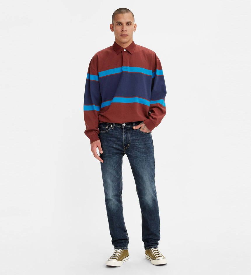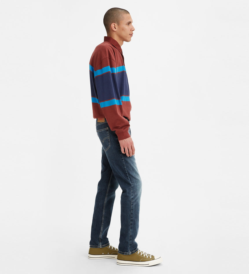 Celana jeans ini dibuat dengan potongan slim yang modern dengan ruang untuk bergerak dan tidak terlalu ketat. Cocok untuk gaya casual Anda di berbagai kesempatan.