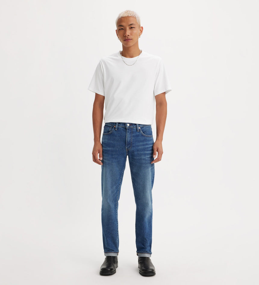 Celana jeans ini dibuat dengan potongan slim yang modern dengan ruang untuk bergerak dan tidak terlalu ketat. Cocok untuk gaya casual Anda di berbagai kesempatan.