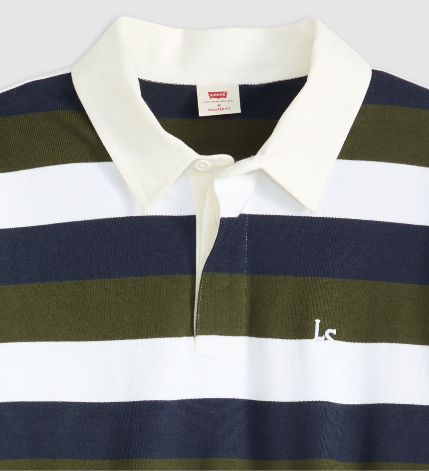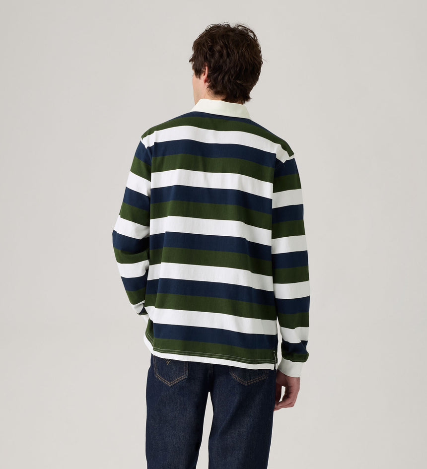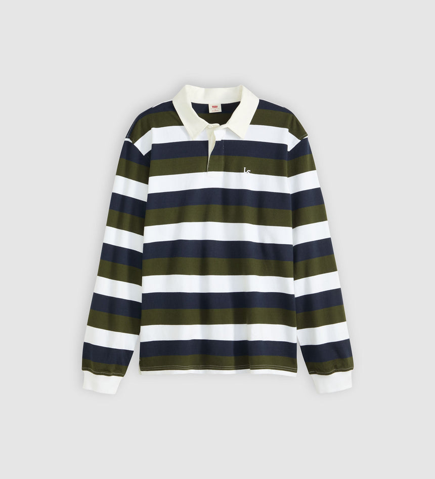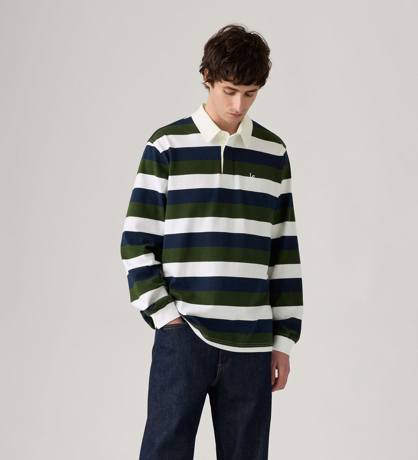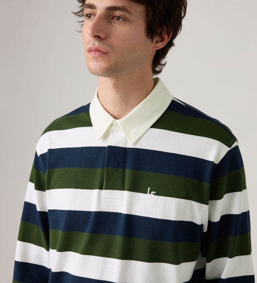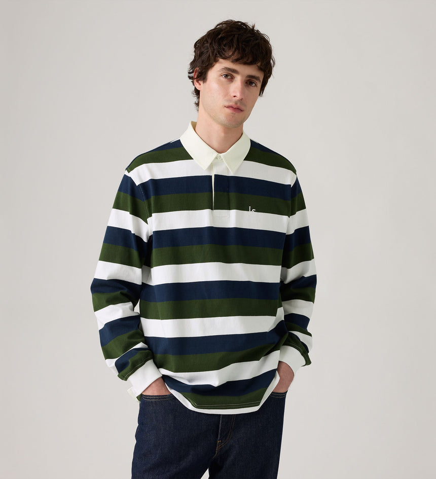 Levi's® Men's Union Rugby Shirt adalah kaus lengan panjang pria bergaya klasik yang terinspirasi dari seragam rugby vintage. Didesain dengan potongan relaxed fit dan detail kerah woven, kaus ini memberikan tampilan kasual yang sporty sekaligus stylish. Terbuat dari bahan katun berkualitas yang nyaman dipakai seharian, cocok untuk tampilan santai namun tetap berkelas. Pilihan tepat untuk kamu yang mencari kaos pria...