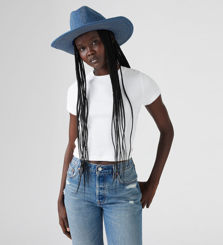 - Sebuah topi denim dengan inspirasi gaya barat.