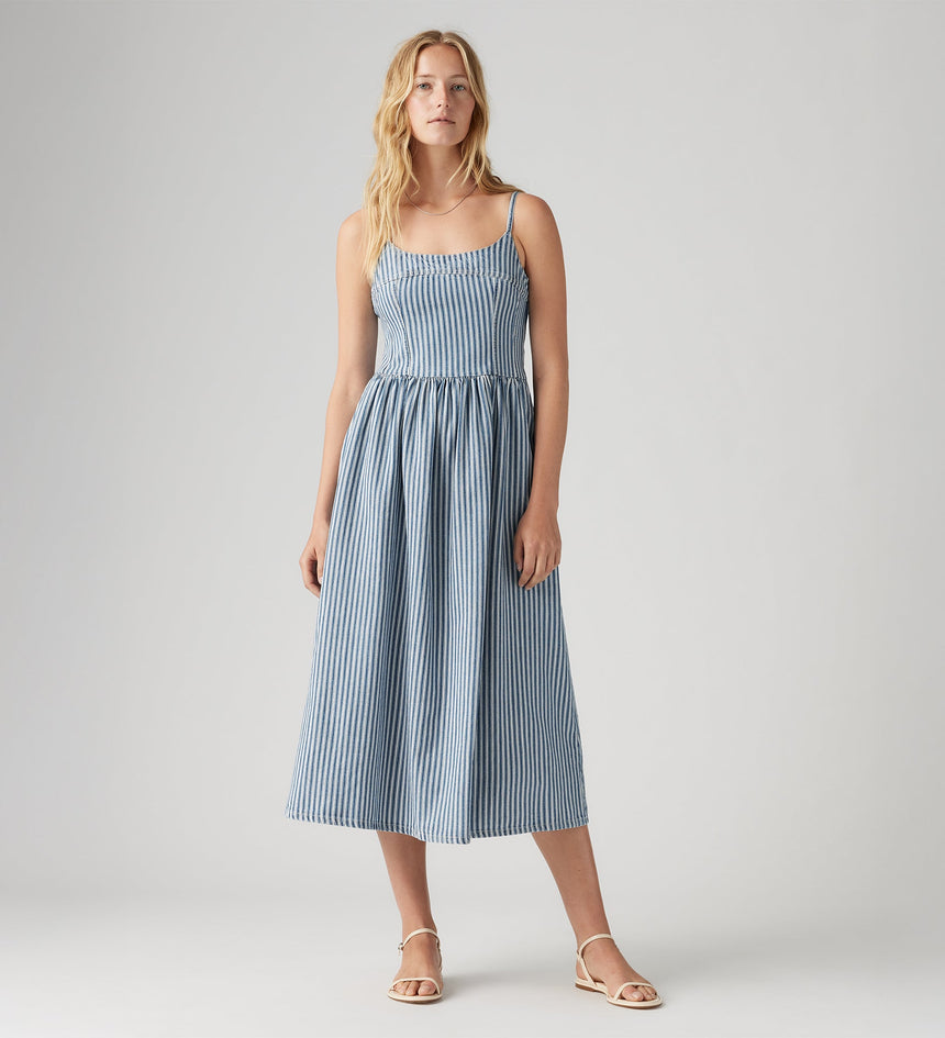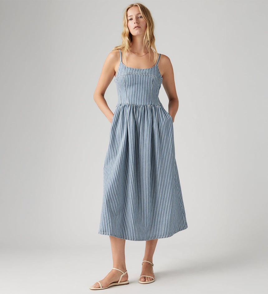 Levi's® Women's Alessie Bustier Dress menggabungkan siluet feminin dengan sentuhan edgy khas Levi's®. Detail bustier yang menonjolkan bentuk tubuh dipadukan dengan desain minimalis untuk tampilan yang elegan namun tetap effortless. Cocok untuk berbagai kesempatan, dari santai hingga semi-formal.