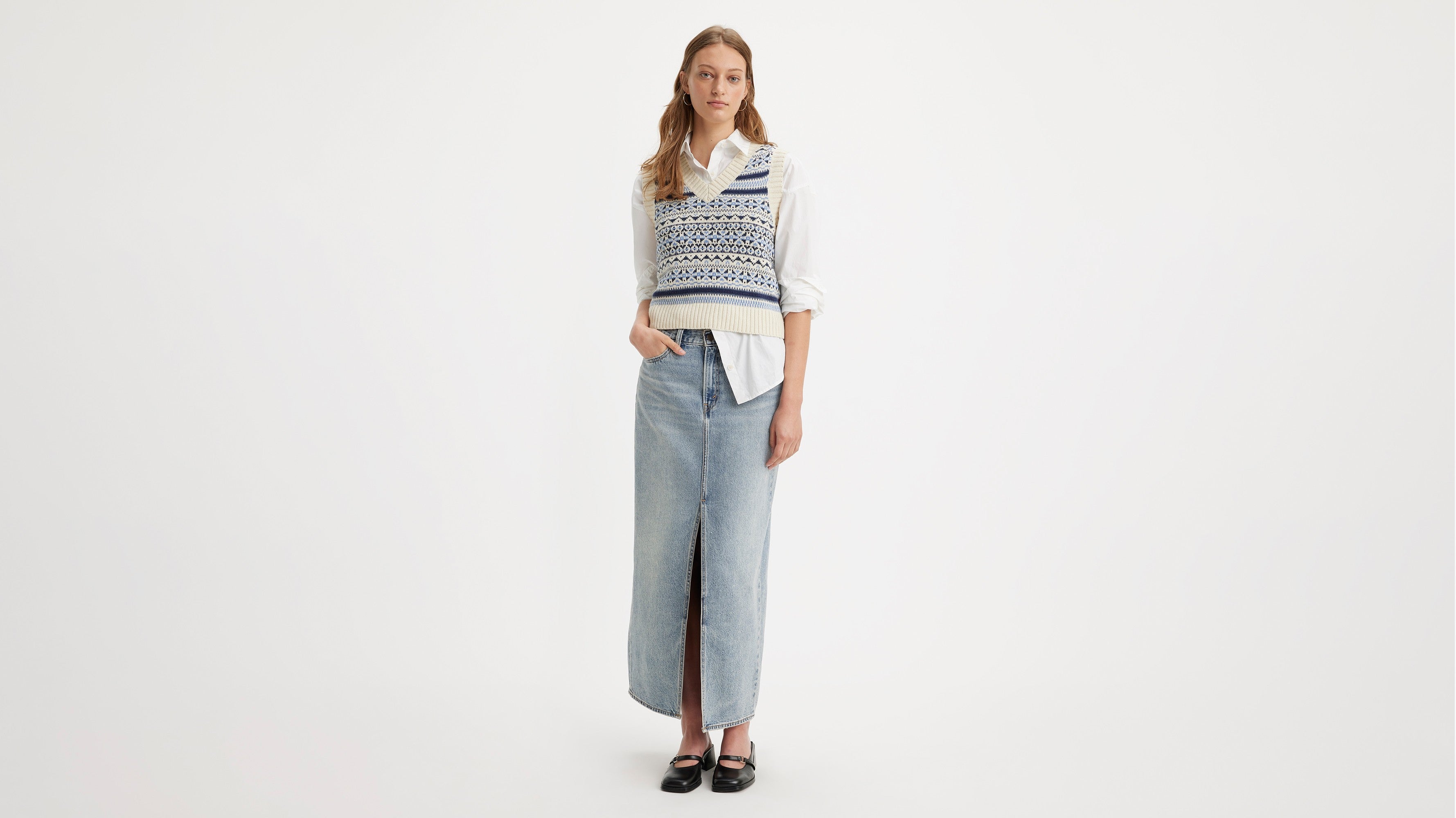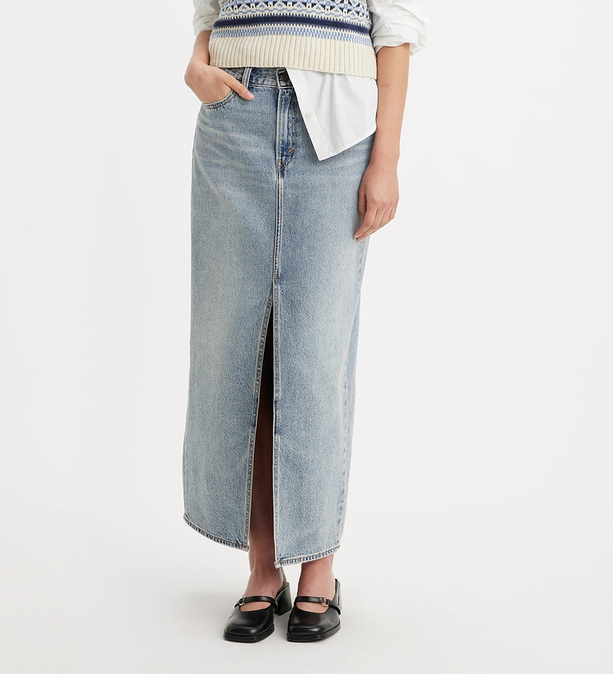 Hanya sedikit gaya yang serbaguna dan semudah rok panjang. Kasual keren dan sedikit tahun 90-an, Rok Kolom kami menampilkan mid rise yang bagus, panjang pergelangan kaki, dan belahan yang lucu di bagian tengah.