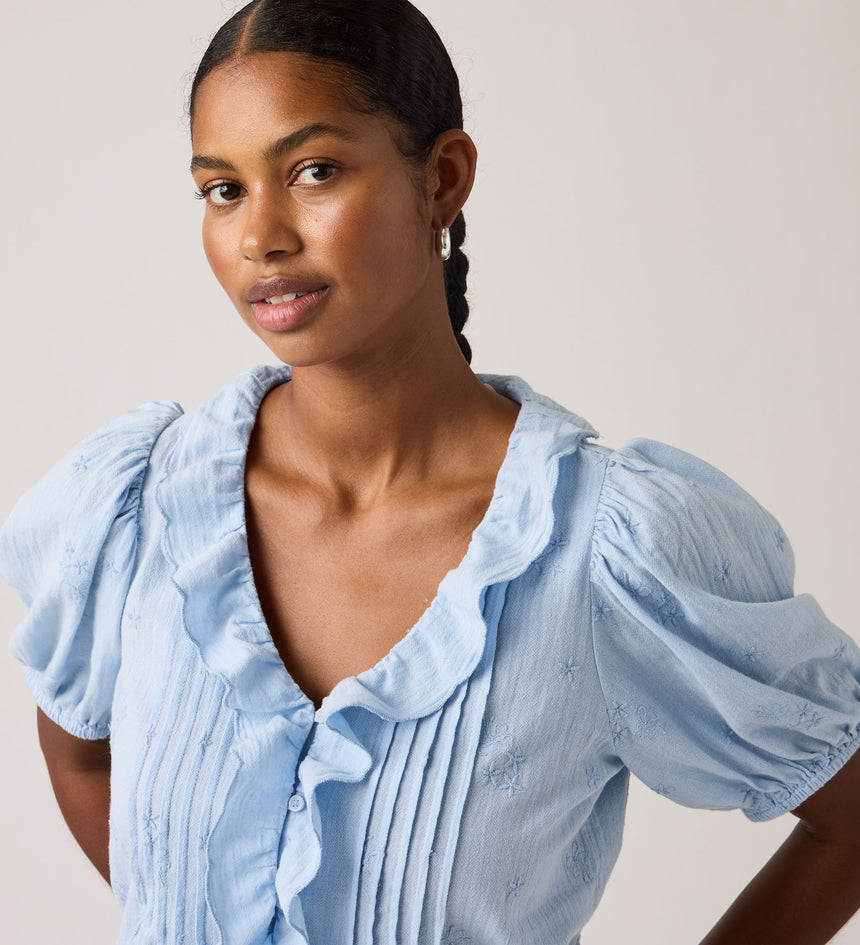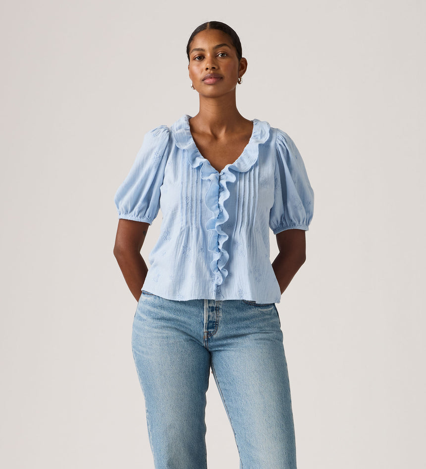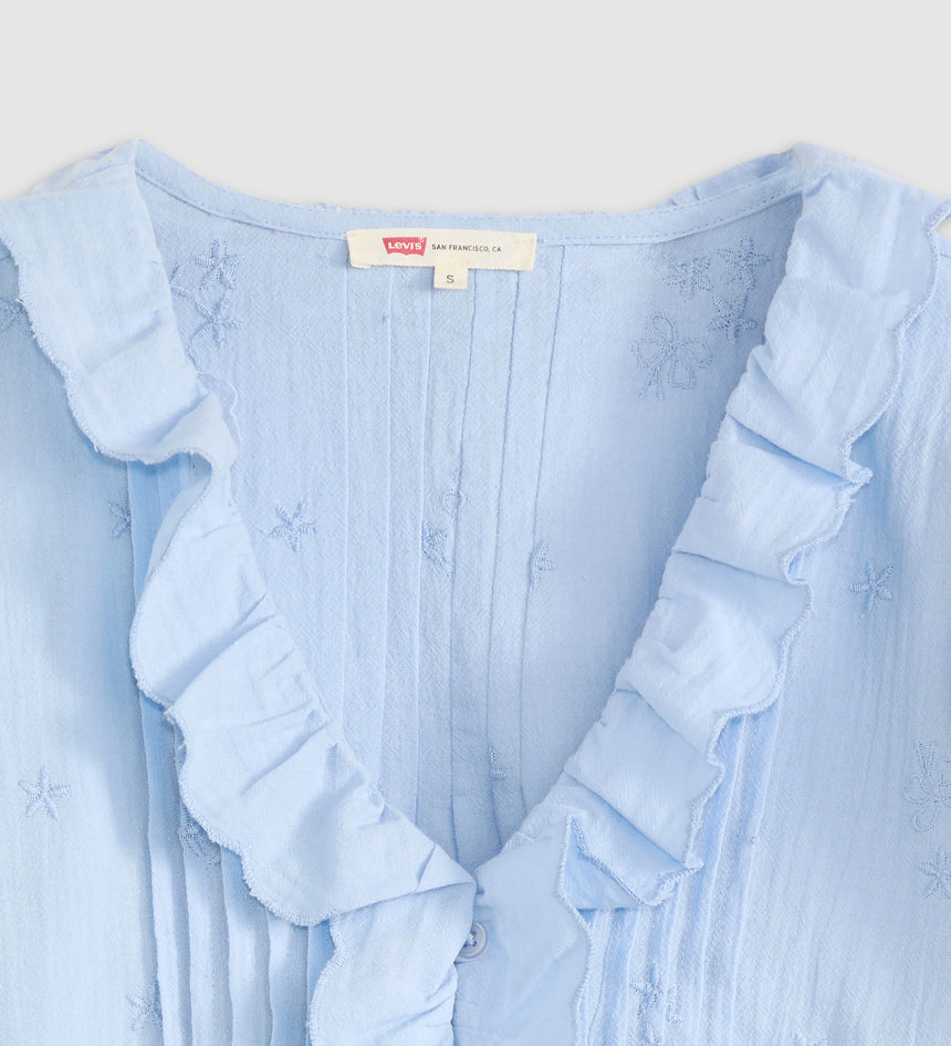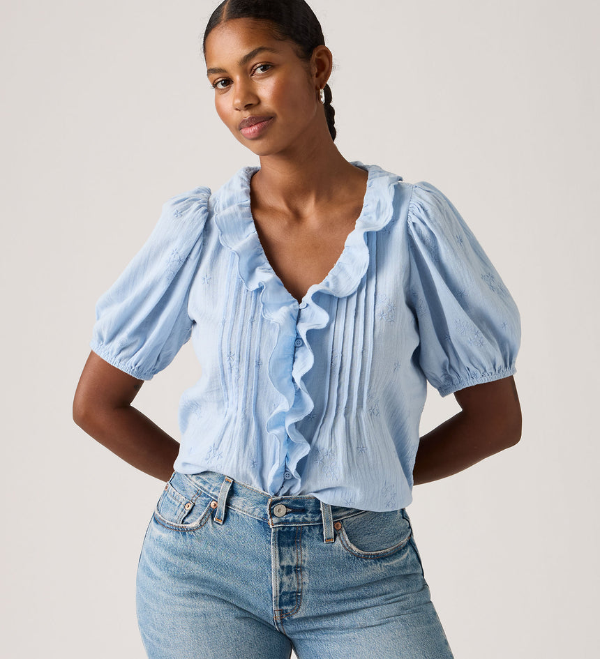 Levi's® Women's Giselle Ruffle Blouse adalah blus feminin dengan detail ruffle yang lembut, memberikan sentuhan manis dan elegan pada penampilan Anda. Didesain dengan siluet yang ringan dan flowy, blus ini cocok untuk berbagai kesempatan—mulai dari gaya kasual hingga acara semi-formal. Kombinasi desain klasik dan detail modern membuatnya mudah dipadukan dengan jeans, rok, atau celana favorit Anda.