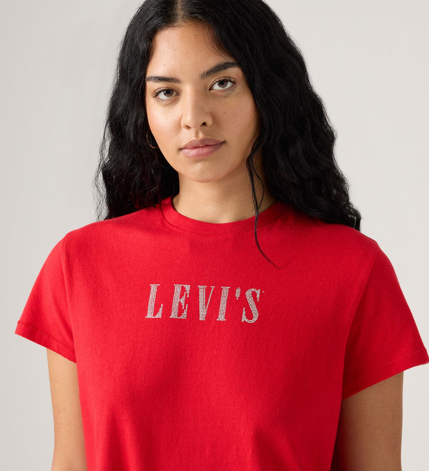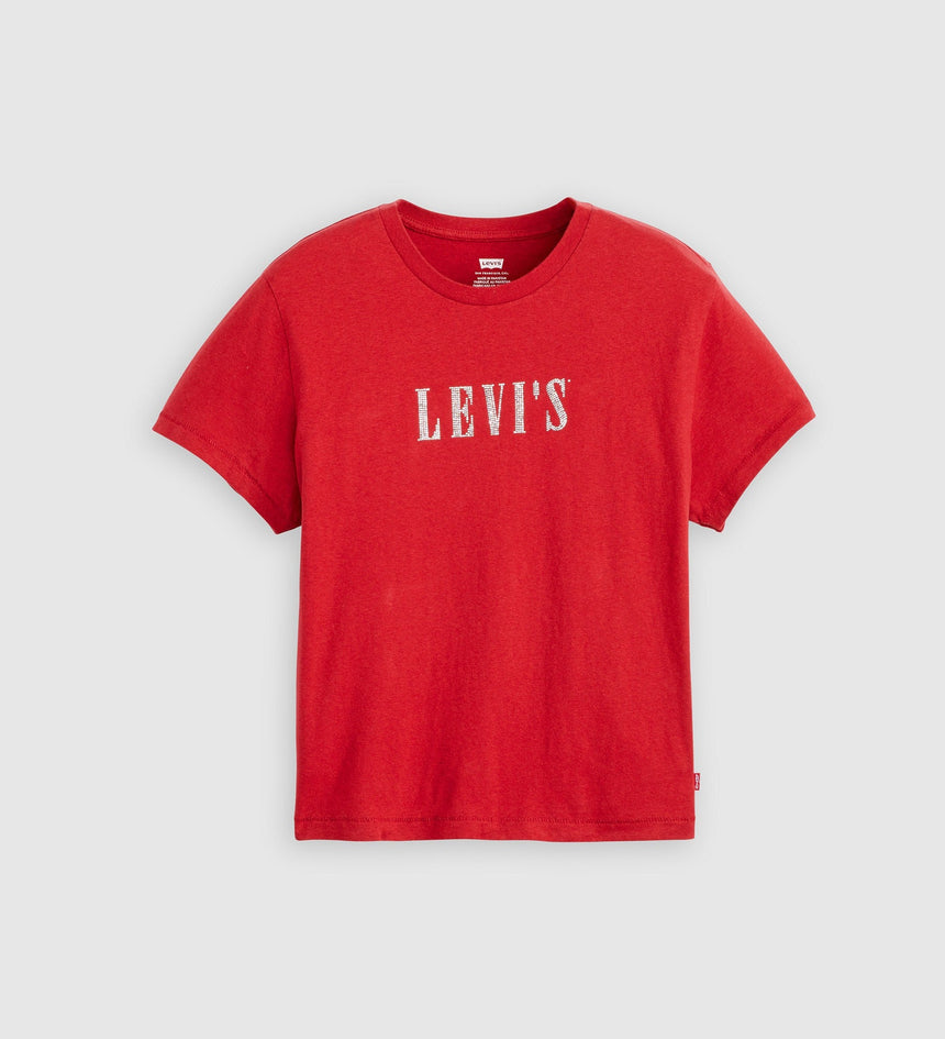 Color: Rhinestone Serif Logo True Red
