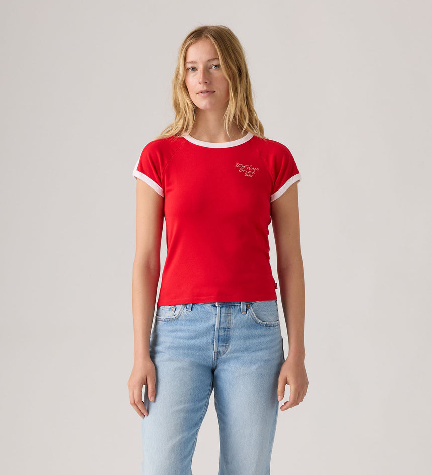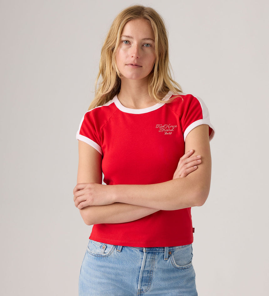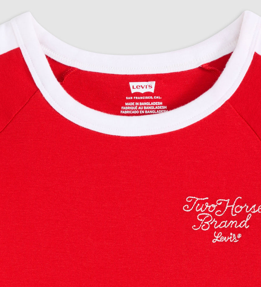 Levi's® Women's Graphic Riley Raglan Tee adalah kaus wanita bergaya retro dengan desain raglan khas yang memberikan tampilan sporty dan kasual. Terbuat dari bahan lembut dan ringan, kaus ini nyaman dipakai seharian. Detail grafis ikonik Levi’s® di bagian depan menambah karakter pada outfit kamu, cocok dipadukan dengan jeans atau celana favorit untuk gaya santai yang effortless.