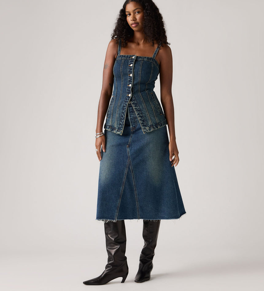 Levi's® Women's High-Rise A-Line Decon Skirt adalah rok denim wanita dengan potongan A-line modern dan pinggang tinggi yang menonjolkan siluet ramping. Didesain dengan aksen raw hem dan tampilan deconstructed yang edgy, rok ini memberikan sentuhan kasual yang tetap stylish. Terbuat dari denim berkualitas khas Levi’s®, cocok dipadukan dengan atasan favorit untuk tampilan effortless. Pilihan ideal untuk kamu yang mencari rok...