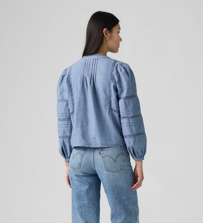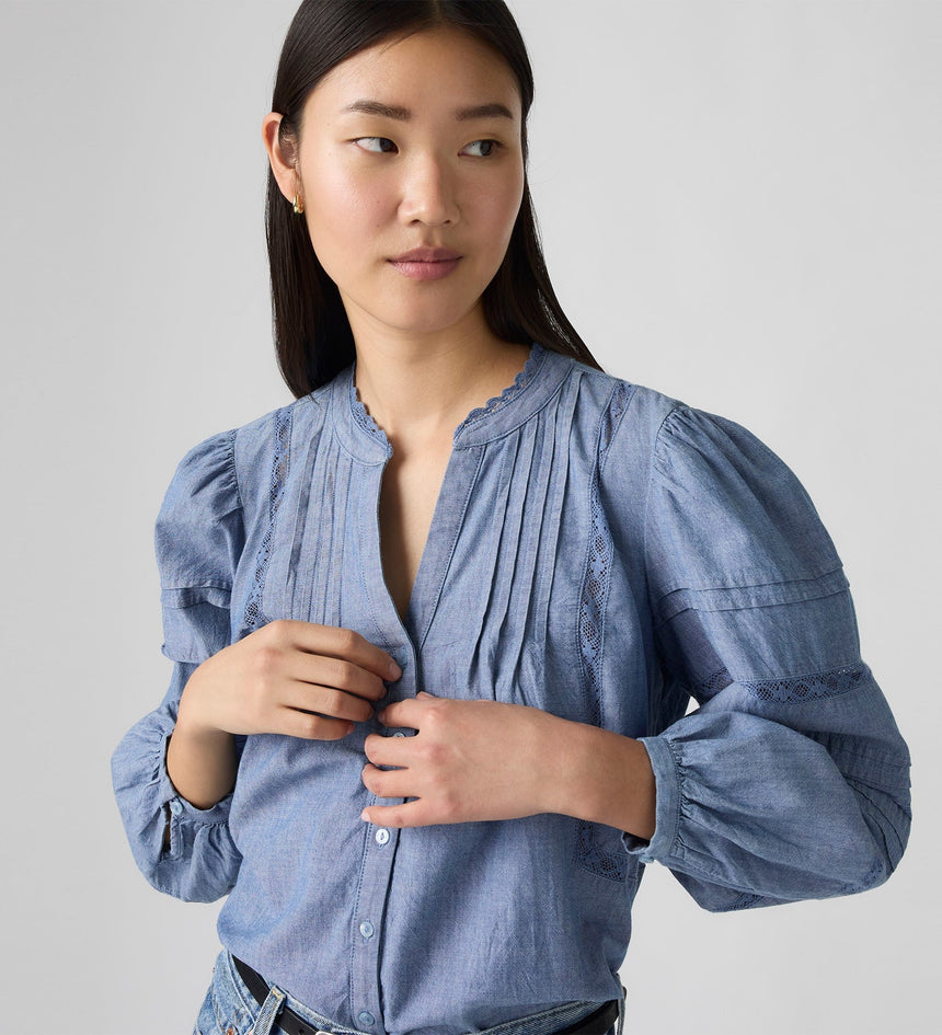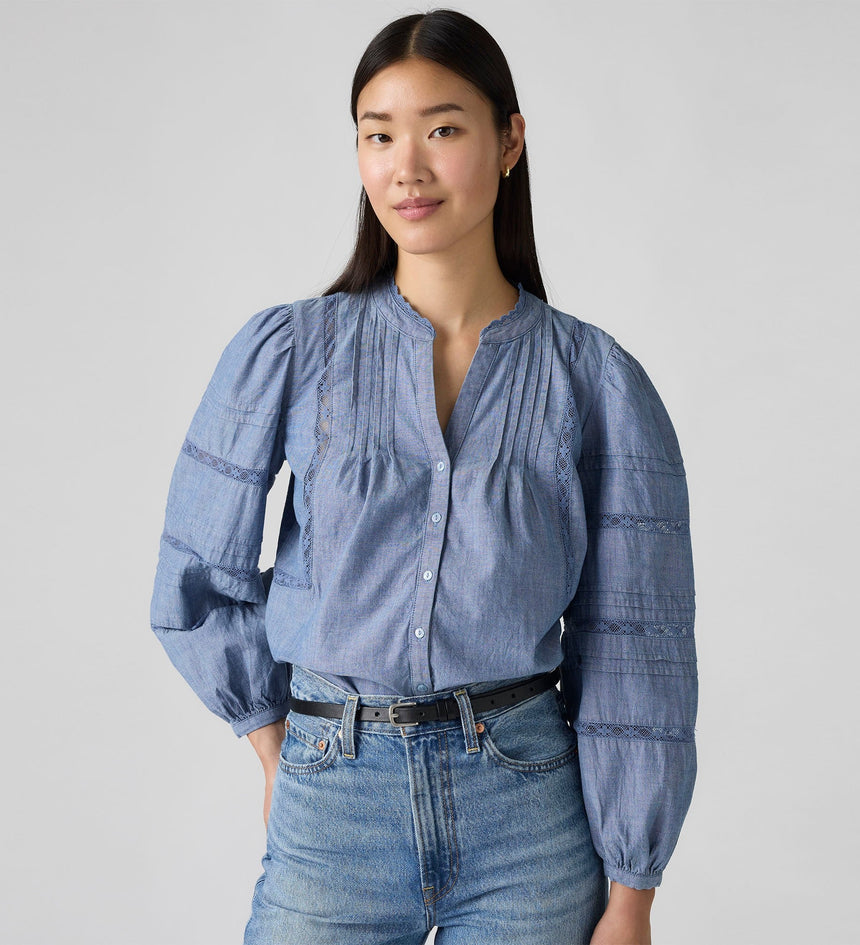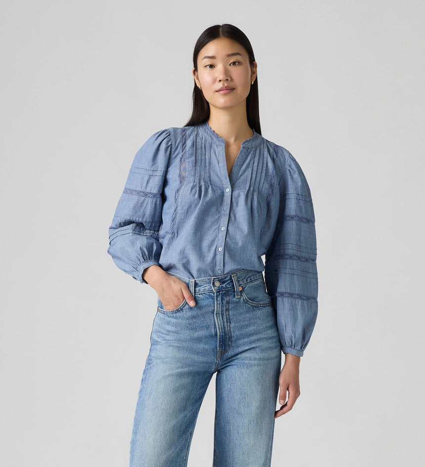 Levi's® Women's Mandy Long-Sleeve Blouse menghadirkan tampilan feminin yang elegan dengan sentuhan kasual. Dibuat dari bahan ringan dan nyaman, blouse ini memiliki potongan longgar dengan lengan panjang yang memberikan siluet anggun. Cocok untuk dipadukan dengan jeans atau rok favoritmu untuk tampilan effortless setiap hari.