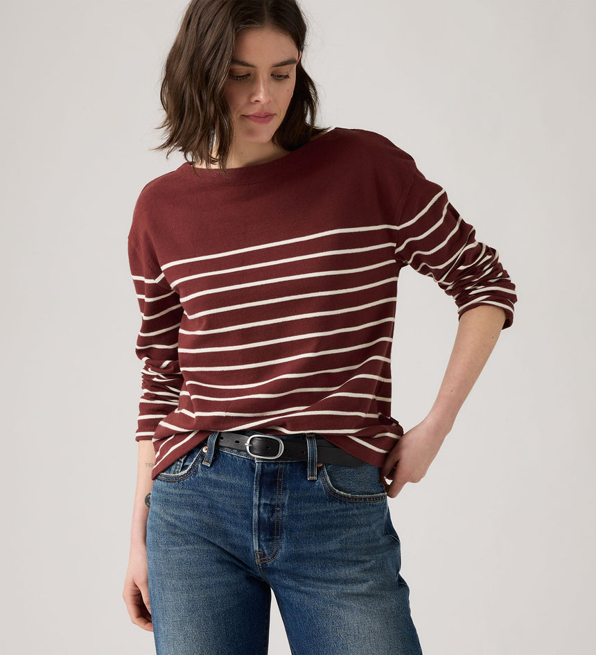 Levi's® Women's Marin Striped Top adalah atasan bergaris dengan sentuhan klasik dan siluet modern yang cocok untuk tampilan santai sehari-hari. Didesain dengan potongan relaxed fit dan bahan yang lembut, kaus wanita Levi’s® ini memberikan kenyamanan maksimal tanpa mengorbankan gaya. Motif stripe-nya yang timeless menjadikannya pilihan versatile untuk dipadukan dengan jeans, rok, atau celana favoritmu.