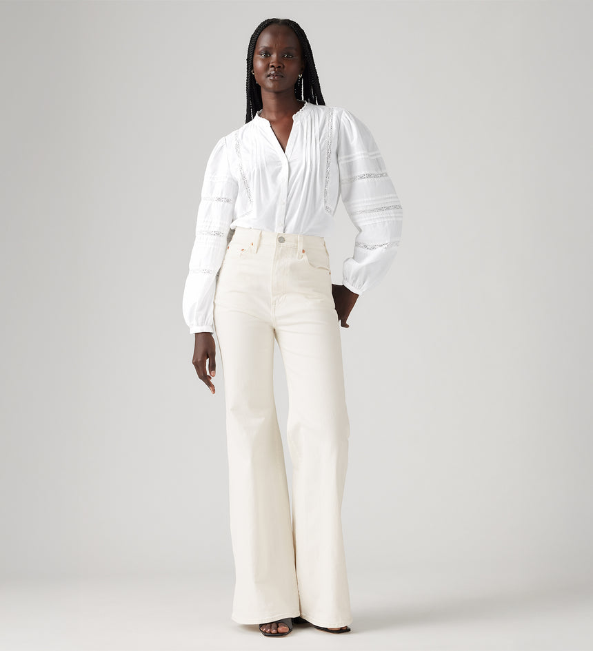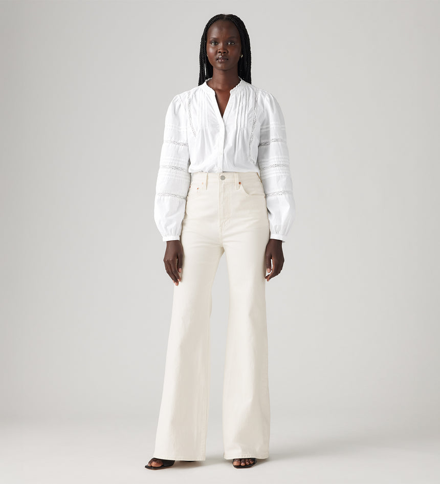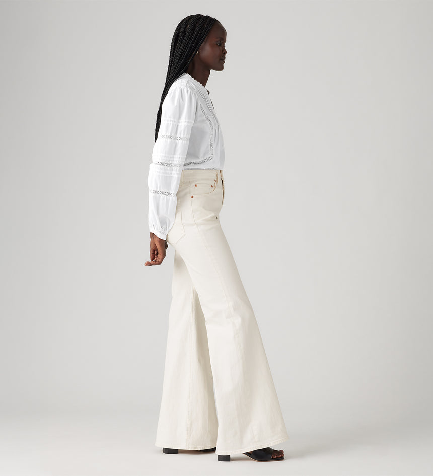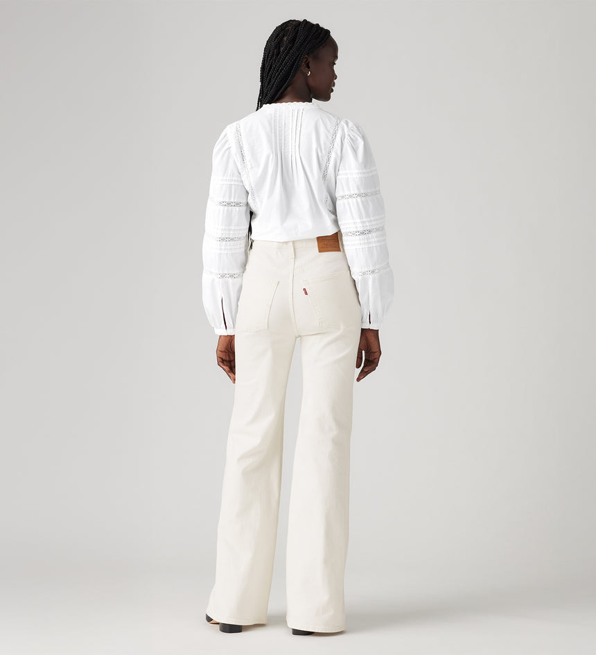Desain tinggi hingga pinggang, dikenal dengan sebutan "Ribcage" yang mengacu pada ketinggian pinggang yang ekstra tinggi. Celana jeans ini memiliki potongan kaki yang lebar ke bawah, menciptakan siluet bell-bottom yang klasik dan retro. Desain ini memberikan nuansa gaya yang unik dan menonjolkan gaya vintage yang sedang trend. Terbuat dari bahan denim berkualitas, celana jeans ini menawarkan kenyamanan dan daya tahan...