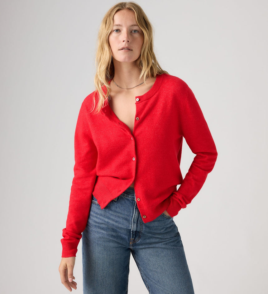 Levi's® Women's Supersoft Crewneck Cardigan adalah cardigan ringan dengan bahan super lembut yang nyaman dipakai seharian. Didesain dengan siluet klasik dan detail kancing depan, item ini mudah dipadukan untuk tampilan kasual hingga semi-formal. Pilihan tepat untuk layering stylish di segala suasana.
