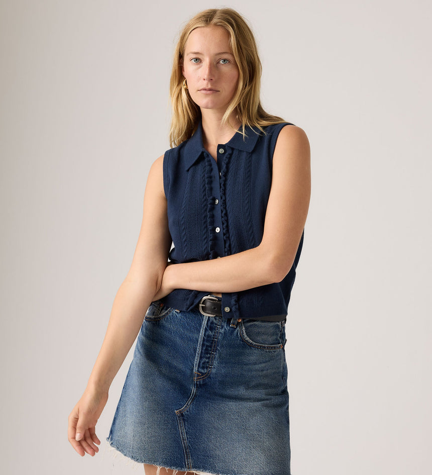 Levi’s® Women’s Supersoft Mini Ruffle Vest Top menghadirkan atasan wanita dengan tekstur lembut dan desain feminin yang stylish. Dilengkapi kancing depan klasik, detail ruffle yang manis, serta potongan standard fit yang nyaman, vest top Levi’s wanita ini mudah dipadukan untuk tampilan kasual hingga semi-formal. Pilihan tepat bagi kamu yang mencari atasan Levi’s yang ringan, elegan, dan nyaman dipakai sepanjang hari.